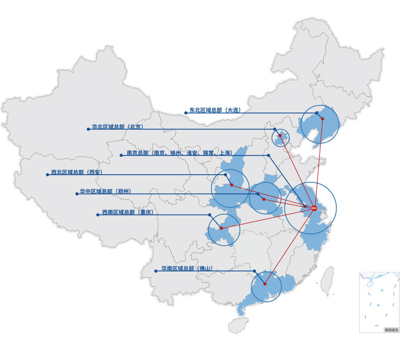 • 国内:以苏州为中心,成立南京区域第二总部,并积极扩容国内分公司,现已形成八大区域总部。